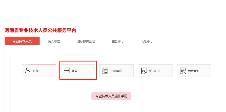 1.登录“河南省专业技术人员继续教育信息管理系统”网页下拉至“继续教育服务窗口”-“专业技术人员”栏-点击“登录”
